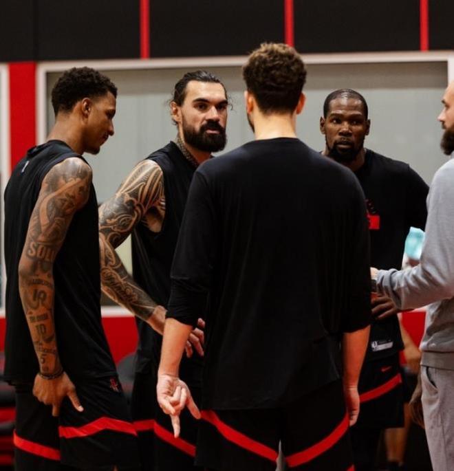 其实本场比赛火箭队能够大胜篮网队,跟乌度卡教练的主动变阵密不可分。之前火箭队两场比赛都沿用了所谓的“五高阵容”:阿门・汤普森担当控球后卫,杜兰特改打得分后卫;两位前锋是小史密斯和申京;内线中锋是亚当斯首发。这样的首发五虎虽然高大,还具有体型优势,但是对于火箭队来说,他们牺牲了速度以及三分投篮能力。所以面对强大的雷霆队和活塞队,火箭队起初确实有出奇制胜的效果,但是如果对方适应之后,完全可以用小个阵容去拖垮火箭队,这也是火箭队两场比赛失利的原因之所在。
